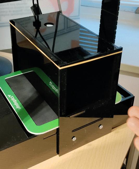 - Place your arm on the armrest, such that your arm does not touch the box.